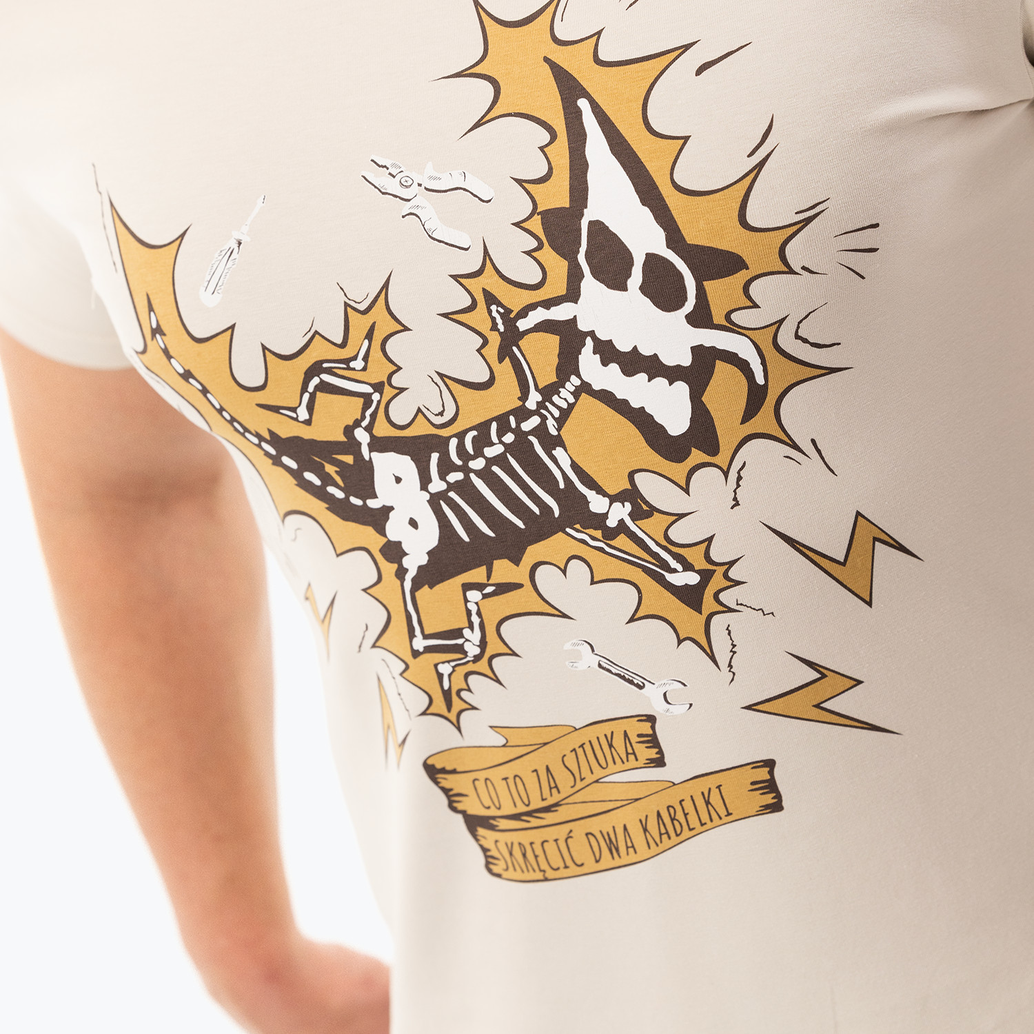 Niezależnie, czy masz skręcić dwa kabelki, czy walczysz z trzema fazami, to w nowiutkiej beżowej koszulce z Łęciną będziesz wyglądać jak człowiek, który jest obyty w temacie i zna się na tym co robi. Nawet wtedy, gdy jest zupełnie odwrotnie!