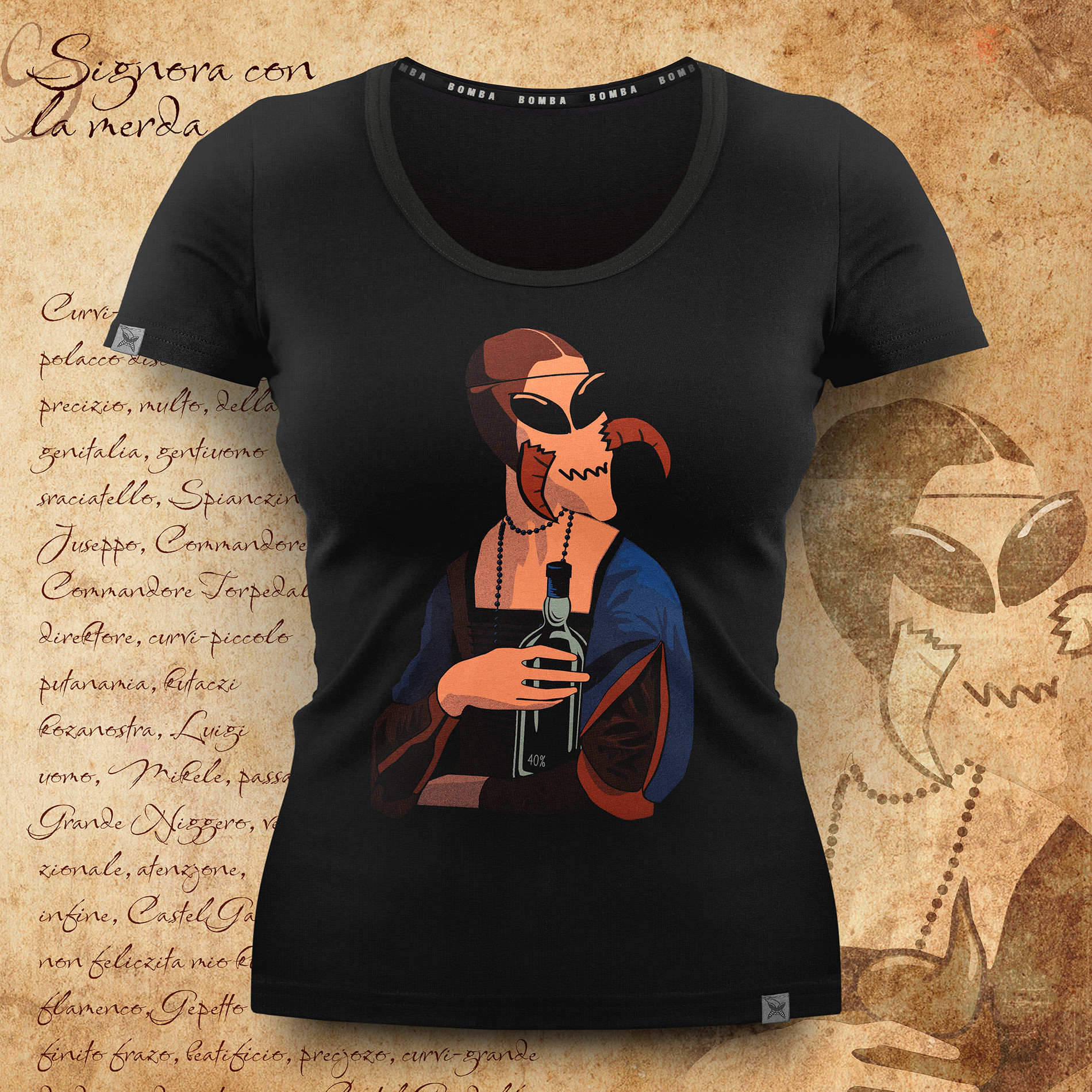 Była “Dama z gównem”, jest “Dama z łasiczką flaszeczką” – i to w wersji dla Pań! Koszulka świetnie nada się na noc muzeów, ale również na spotkania ze znajomymi przy maratonie “Kapitana Bomby” na YT.