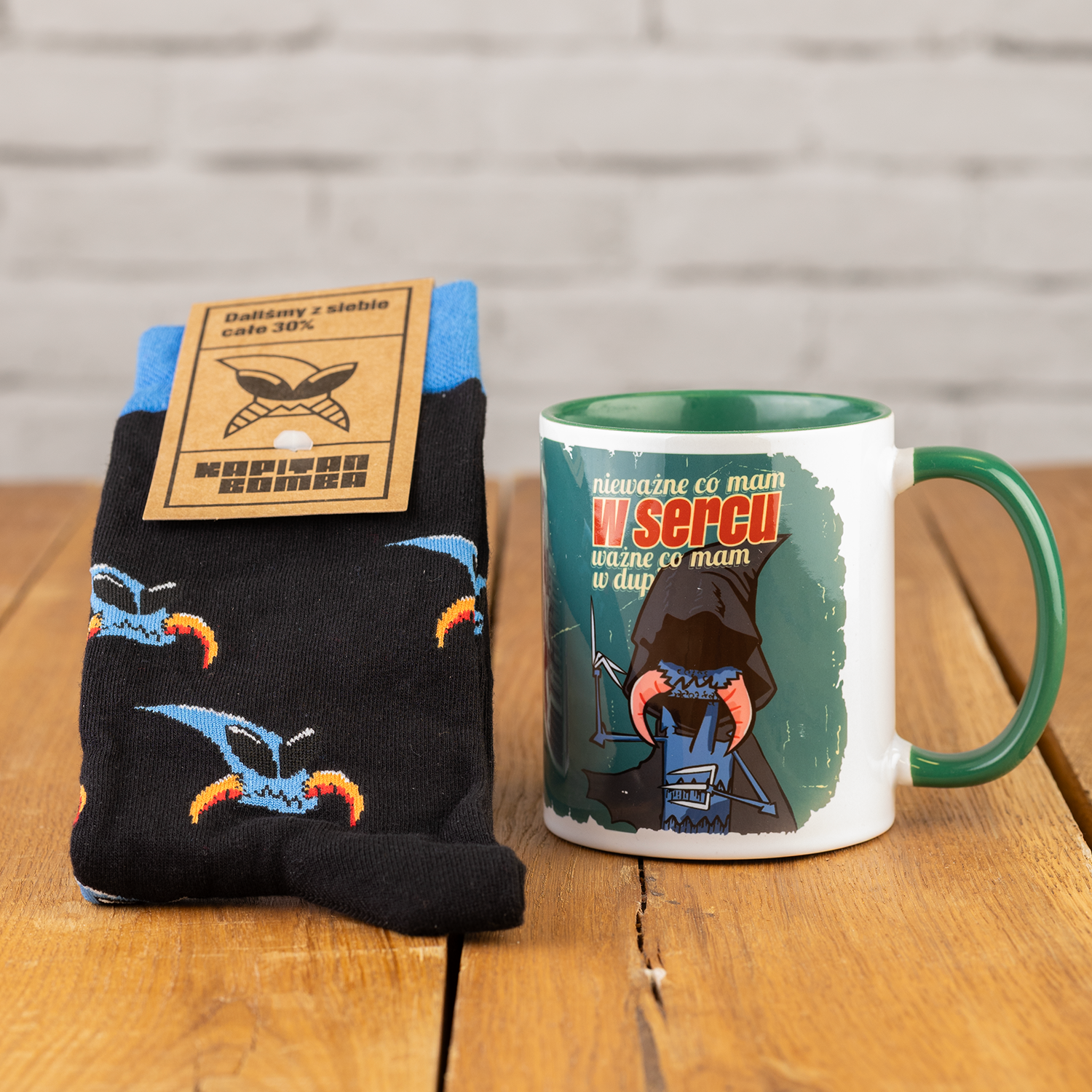 Nasz kultowy kubek teraz w zestawie ze skarpetkami! Tematyczny, zajebisty, idealny na prezent – każdy będzie zachwycony, oj każdy… Spodoba się nawet wtedy, jeżeli w kwestii naszego uniwersum jest się jaroszem!