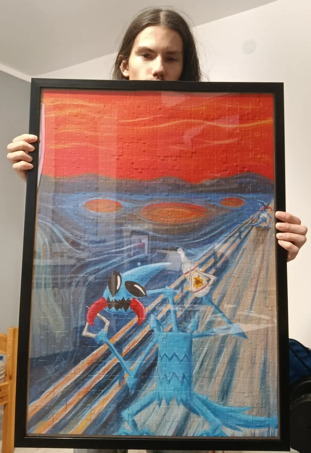 Kupiłem, bo myślałem, że to znane dzieło Muncha. Po złożeniu okazało się że jest inaczej, jednak tytuł podsunął mi pewien pomysł – zabieg "4 razy wóda 4 razy, podwójnie" sprawił, że obraz wygląda kropka w kropkę jak słynne dzieło – jakby wyszedł z fabryki!